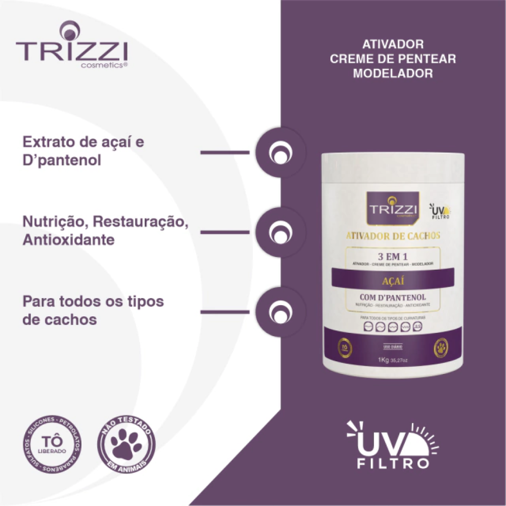 01 Ativador de Cachos 3 em 1 Açai + D' Pantenol + Karite 1Kg Trizzi Cosmetics.